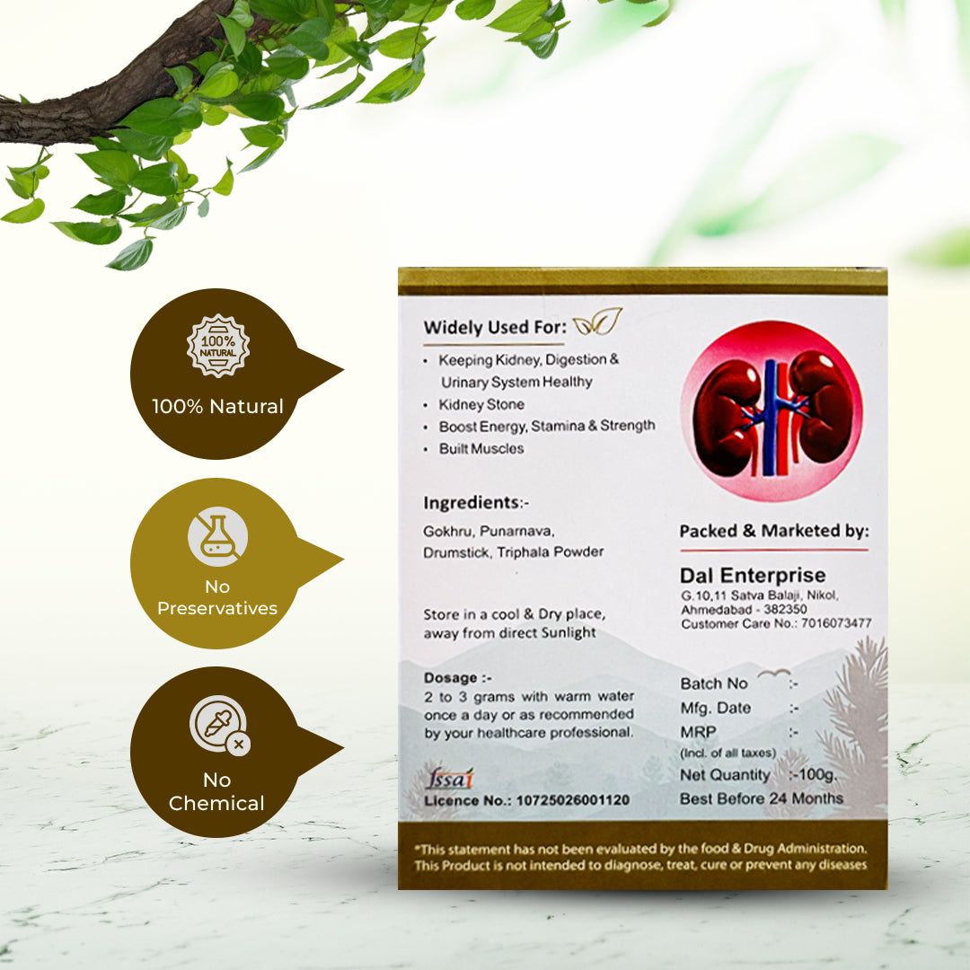 Made with powerful botanicals like Gokhru, Punarnava, Drumstick & Triphala, it supports kidney cleansing, helps control stone formation, reduces discomfort, and promotes smooth urine flow.